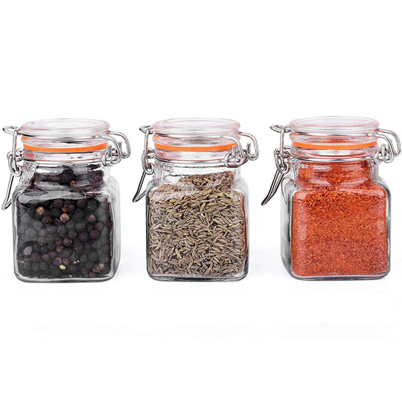 Custom 4oz Unique Square Kitchen Spice Storage Bottle Pepper Gringer Glass Spice Jar with Airtight Flip Top & Lables for Sale.